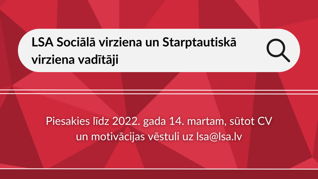 Tiek izsludināta pieteikšanās uz diviem Latvijas Studentu apvienības (LSA) valdes locekļu amatiem – starptautiskā un sociālā virzienu vadītāju amatiem. Valdes vēlēšanas norisināsies 2022. gada 26. marta LSA kārtējā domes sēdē. Domes sēde norisināsies tiešsaistē, sākums plkst. 10.00 (reģistrācija no plkst. 9.30).