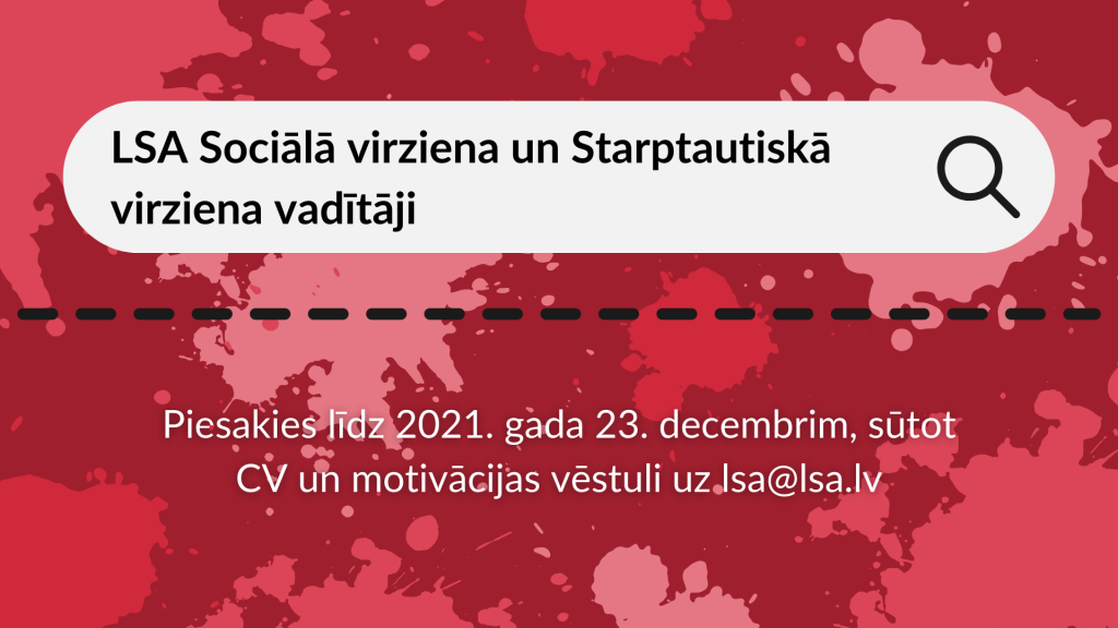 Izsludināta pieteikšanās uz diviem Latvijas Studentu apvienības (LSA) valdes locekļu amatiem. Valdes vēlēšanas norisināsies 2022. gada 8. janvāra LSA kārtējā domes sēdē. Domes sēde norisināsies tiešsaistē, sākums plkst. 10.00 (reģistrācija no plkst. 9.30).