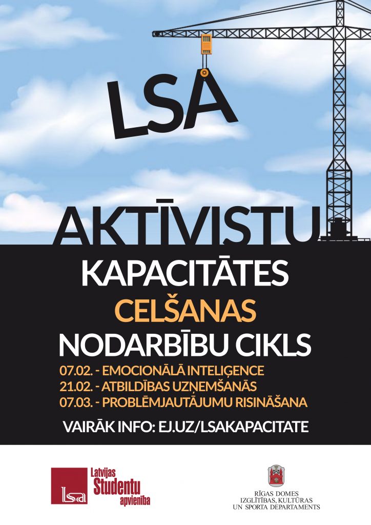 Darbojoties studentijā, ir iespēja apgūt un izmantot daudzas karjerā un dzīvē noderīgas prasmes ─ darbošanos komandā, spēju sprast normatīvos aktus, īstenot projektus un vēl daudz ko citu. Tomēr gan studentijā, gan ārpus tās nepieciešamas arī starppersonu prasmes jeb soft skills. Lai sniegtu iespēju LSA aktīvistiem tās apgūt, tiek rīkots aktīvistu kapacitātes celšanas cikls, kurā trīs lekcijās tiks sniegta iespēja uzzināt varāk par trim svarīgām prasmēm ─ emocionālo inteliģenci, spēju uzņemties atbildību un problēmrisināšanas prasmēm.
