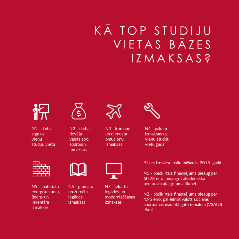 Apstiprinot nākamā gada budžetu un budžeta ietvaru nākamajiem trim gadiem, Saeima piešķīrusi papildu līdzekļus augstākajai izglītībai, trīs gadu periodā paredzot kopumā 906 750 eiro. Tādējādi tiek risināts Latvijas Studentu apvienības (LSA) iepriekš aktualizētais problēmjautājums par iztrūkstošo finansējumu augstākajai izglītībai saistībā ar darba devēja valsts sociālās apdrošināšanas obligāto iemaksu (VSAOI) likmju paaugstinājumu.